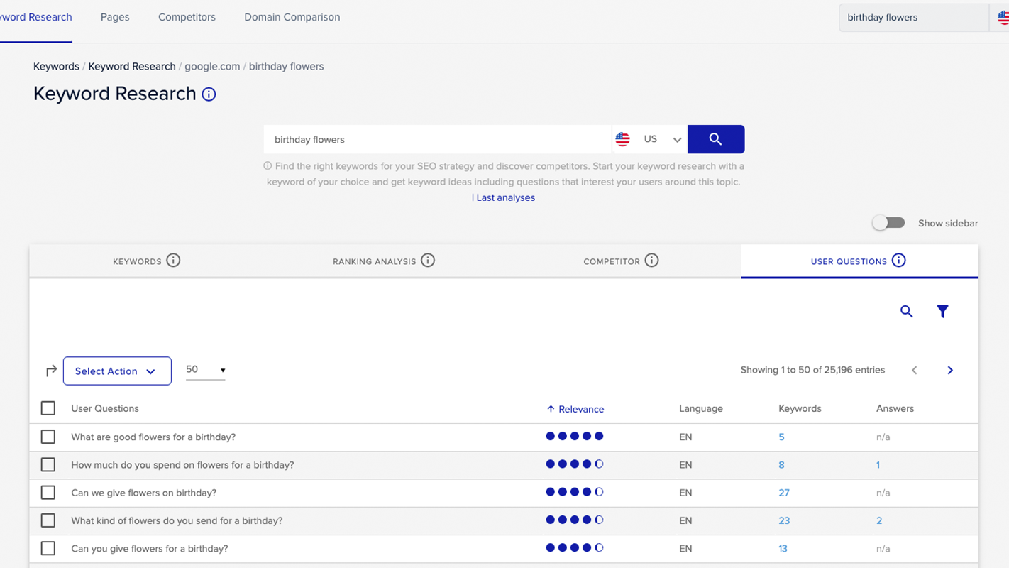 • Get comprehensive keyword data